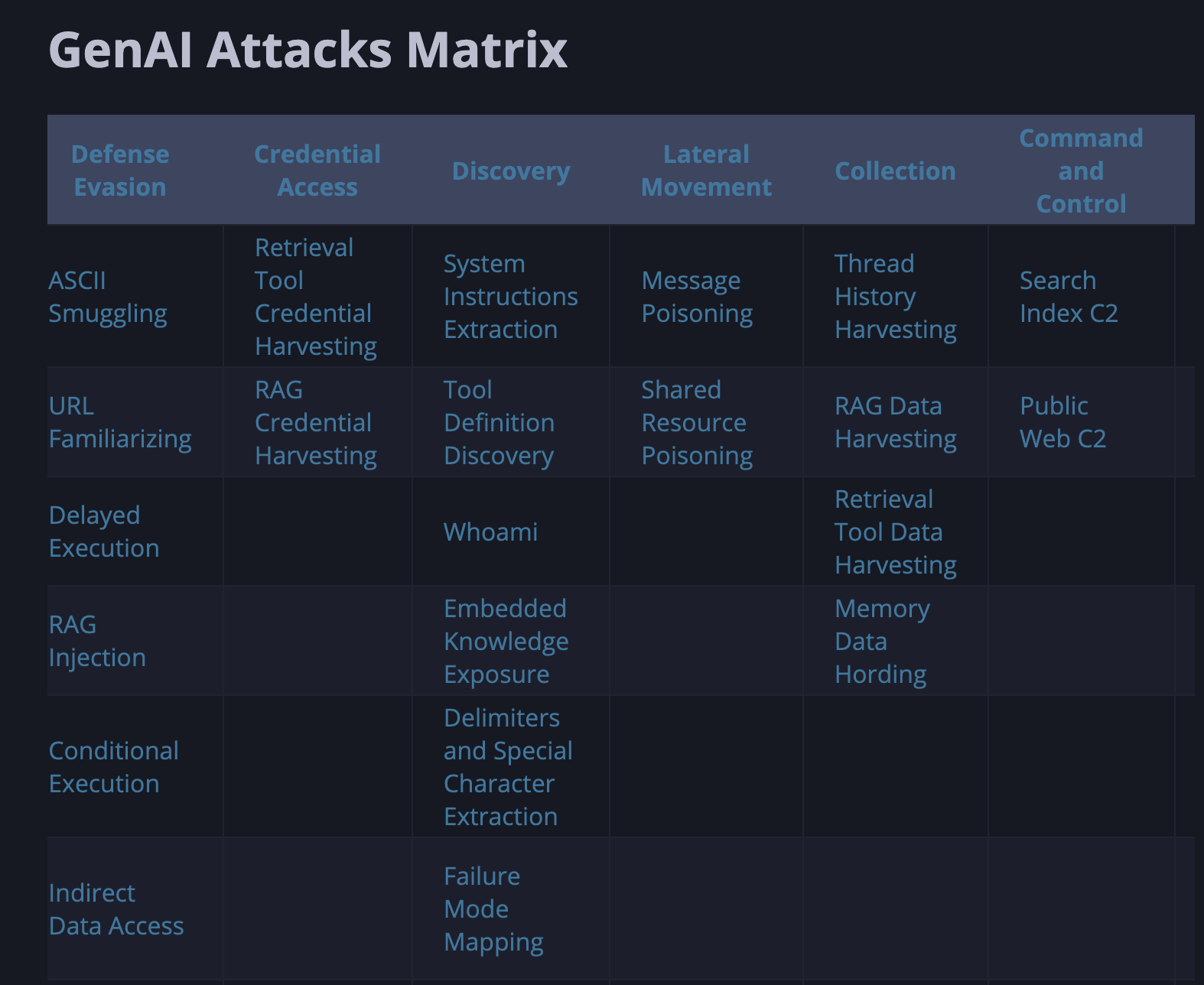 Documenting TTPs that can and are used by hackers to attack GenAI systems like copilots and agents